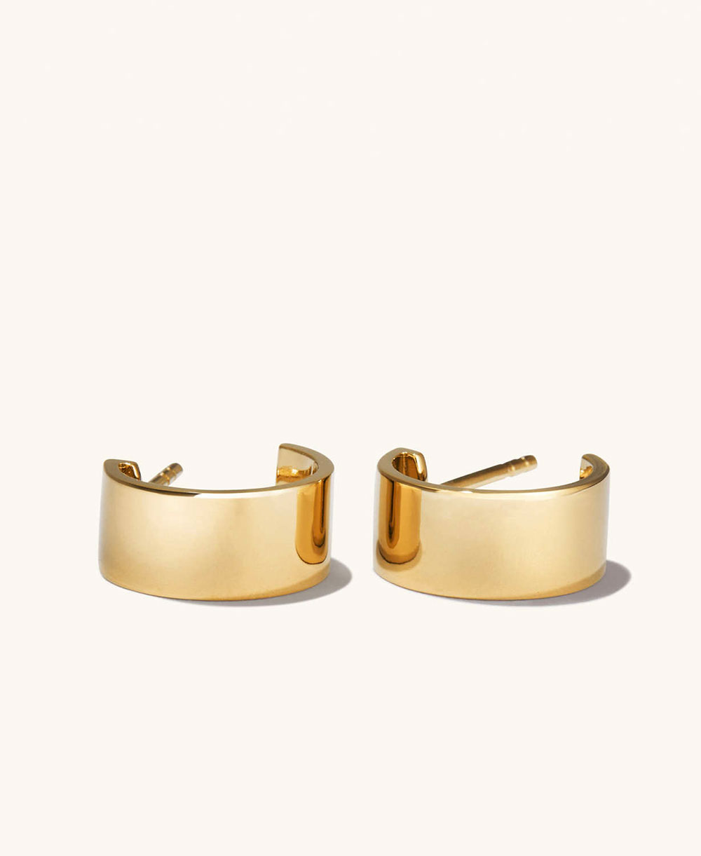 These Daily Huggie Hoops redefine the classic hoop with a modern, substantial design. Featuring a wide, polished surface and a seamless C-shape, they deliver a sophisticated, chunky look without the heavy weight. The snug “huggie” fit and simple post-back closure ensure they stay comfortably in place from morning to night. They’re the ideal versatile pair to elevate any outfit, from office attire to casual weekend looks.